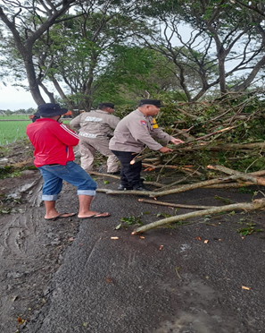 5 Pohon Besar Tumbang Nutupi Jalan Pecuk Dibersihkan Masyarakat Beserta Kamtibmas