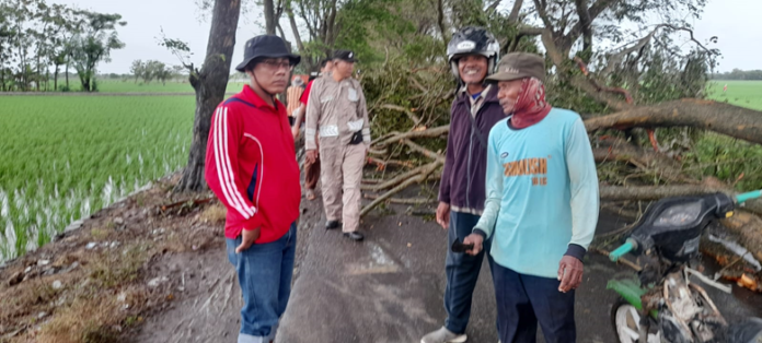 “Kejadian pas jam 7 tadi, saat saya sedang duduk di warung”. Jelas Yamin sambil menunjukkan warung di sebelah pohon yang tumbang.Ia juga menjelaskan, langsung mengeksekusi potongan pohon yang roboh dengan babinkamtibmas Desa Panyindangan Kulon, tim dari BPBD Indramayu dan beberapa masyarakat tani dan karyawan TPA,