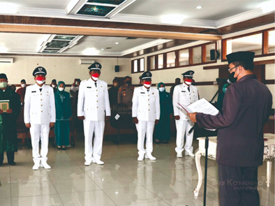 Asisten Pemerintahan dan Kesejahteraan Rakyat (Asda I) Sekretariat Daerah (Setda) Kabupaten Indramayu, Jajang Sudrajat mewakili Bupati Nina Agustina Da’i Bachtiar melantik 4 Kuwu (Kepala Desa-Red) Penggantian Antar Waktu (PAW) di 4 kecamatan di Kabupaten Indramayu. Prosesi pelantikan ini dilakukan di Ruang Ki Tinggil Setda Indramayu, Selasa (8/3/2022).
