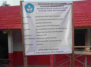 Belum lama ini, kata dia, tim-nya mendapati informasi terkait kegiatan rehabilitasi gedung Sekolah Dasar Negeri 3 Segeran blok klampean, kecamatan juntinyuat Kabupaten Indramayu, Jabar. Di sekolah tersebut terdapat kegiatan Rehab 7 ruang kelas yang notabene dari APBN Tahun Anggaran 2025.