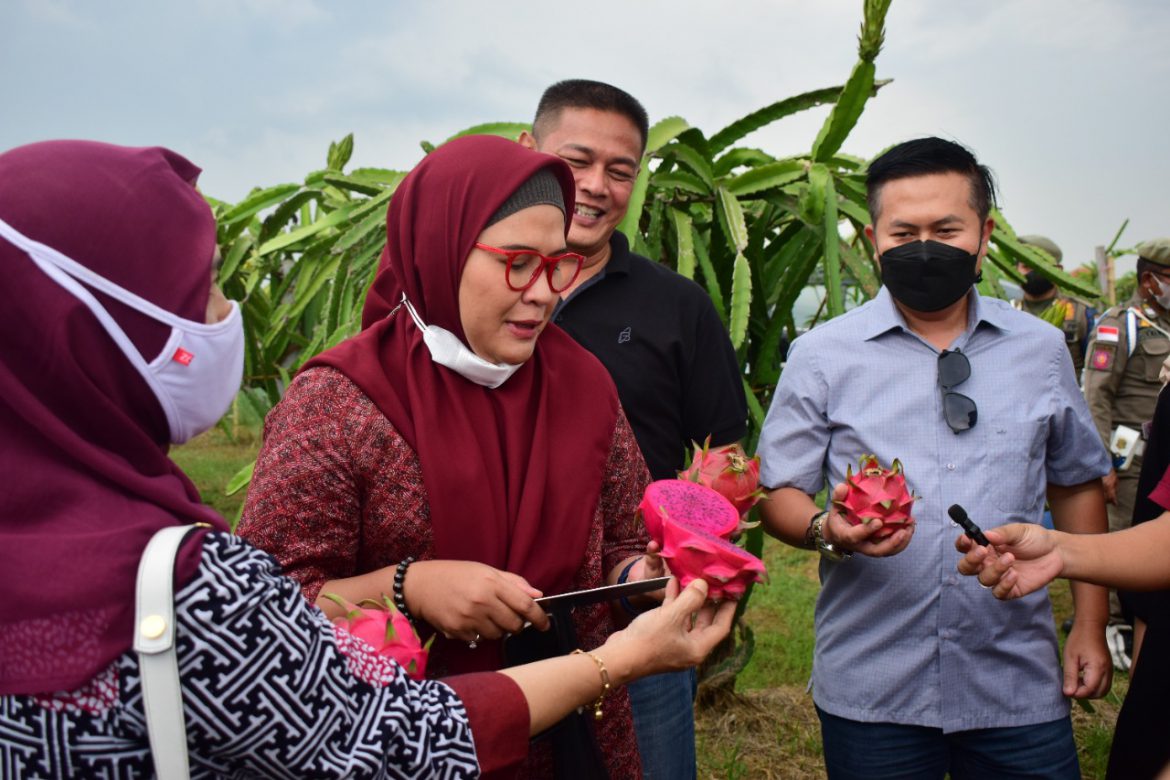 Kekaguman Bupati Indramayu Nina Agustina semakin menjadi saat mencicipi buah naga yang dipetik langsung dari tangkai pohonnya didampingi Pimpinan Cabang Bjb Indramayu Asep Wahyu Ismail, Kepala Satpol-PP Damkar Indramayu Teguh Budiarso dan Camat Indramayu Indra Mulyana.
