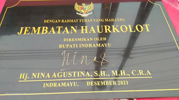 Bupati Indramayu Nina Agustina Da’i Bachtiar meresmikan Jembatan Penghubung di Desa Haurkolot Kecamatan Haurgeulis Indramayu,Selasa (21/12/2021). Peresmian jembatan penghubung antara Desa Haurkolot Kecamatan Haurgeulis dan Desa Situraja Kecamatan Gantar ini menjadi kebanggaan tersendiri untuk masyarakat setempat.