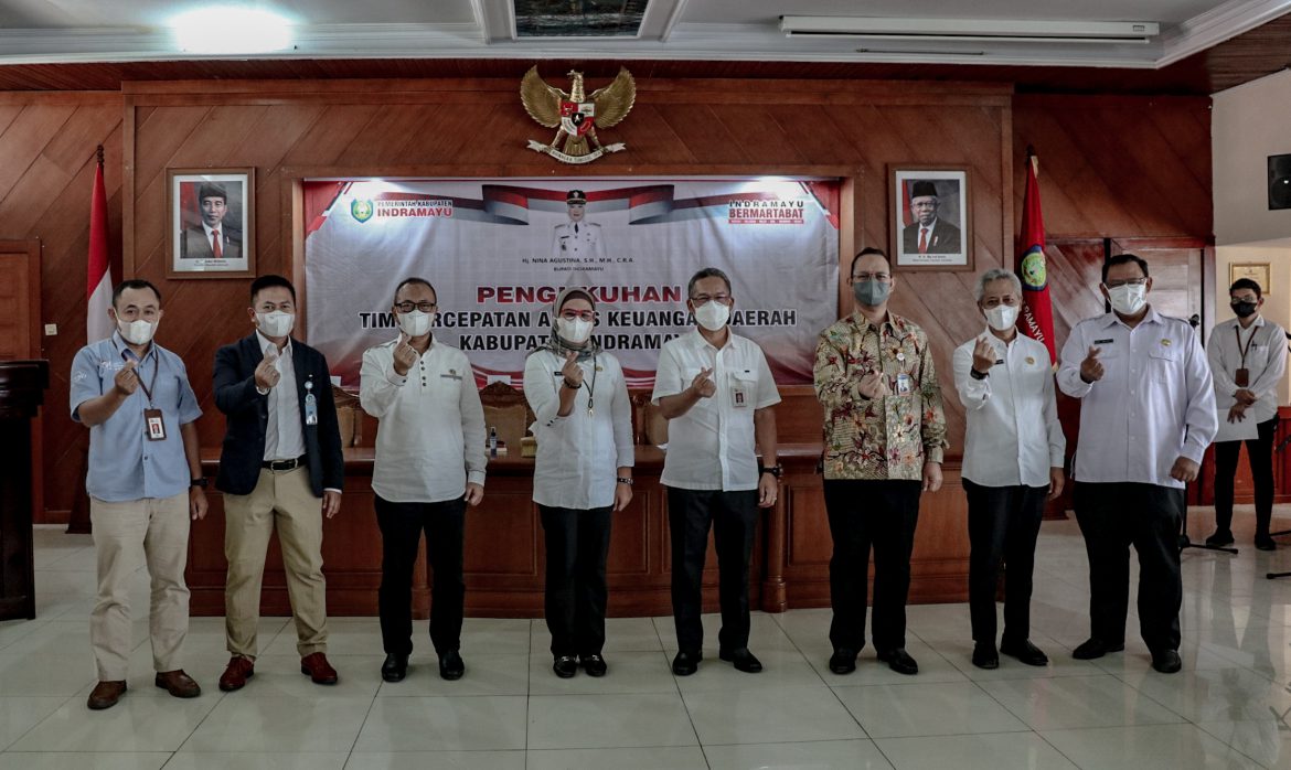 Bupati Indramayu Nina Agustina Da’i Bachtiar mengukuhkan Tim Percepatan Akses Keuangan Daerah (TPAKD) Kabupaten Indramayu, di Ruang Ki Tinggil Sekretariat Daerah Kabupaten Indramayu, Rabu (6/4/2022).Pengukuhan TPAKD Kabupaten Indramayu ini berdasarkan Surat Keputusan Bupati Indramayu No. 580.05/Kep.312-Eko/2021 yang anggotanya terdiri dari pejabat instansi di lingkungan Pemerintah Kabupaten dan stakeholder terkait, yang difungsikan untuk meningkatkan akses keuangan di daerah dan mendorong pertumbuhan ekonomi menuju masyarakat yang lebih sejahtera.