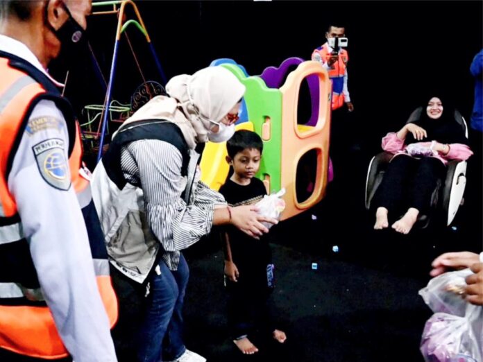 Dini hari tidak membuat suasana posko mudik Jembatan Timbang Losarang menjadi senyap. Kehadiran Bupati Indramayu Nina Agustina dan Forkopimda membuat suasana terasa semarak dan meriah. Bahkan Camat Losarang Opik Hidayat bersama istri turut menemani Bupati Indramayu dan membagikan paket makanan kepada para pemudik yang tengah beristirahat.