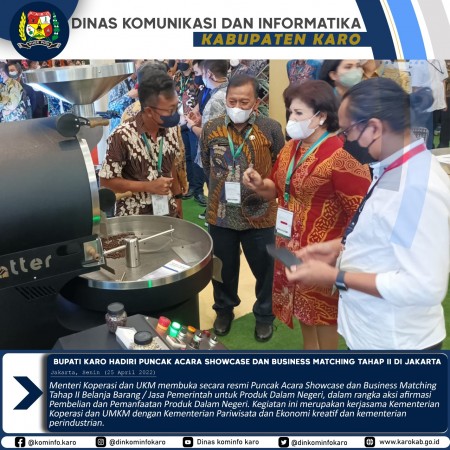 Pada kesempatan ini Bupati Karo Cory S Sebayang juga turut hadir pada Puncak Acara Showcase dan Business Matching Tahap II tersebut di Jakarta Convention Center, Tanah Abang Kota Jakarta Pusat pada Senin (25/04/2022).