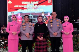 SORANA.CO.ID-INDRAMAYU JAWA BARAT: Bupati Indramayu Nina Agustina Da’i Bachtiar bersama unsur Forkopimda Indramayu menghadiri acara Kenal Pamit Kepala Kepolisian Resort (Kapolres) Indramayu.Kenal Pamit Kapolres Indramayu ini dari AKBP M. Lukman Syarif, S.I.K., M.H., kepada AKBP Dr. M. Fahri Siregar, S.H., S.I.K., M.H. yang berlangsung penuh makna, di Gedung Pertemuan Patra Ayu Komplek Perum Bumi Patra Indramayu, Jum’at (6/1/2023).