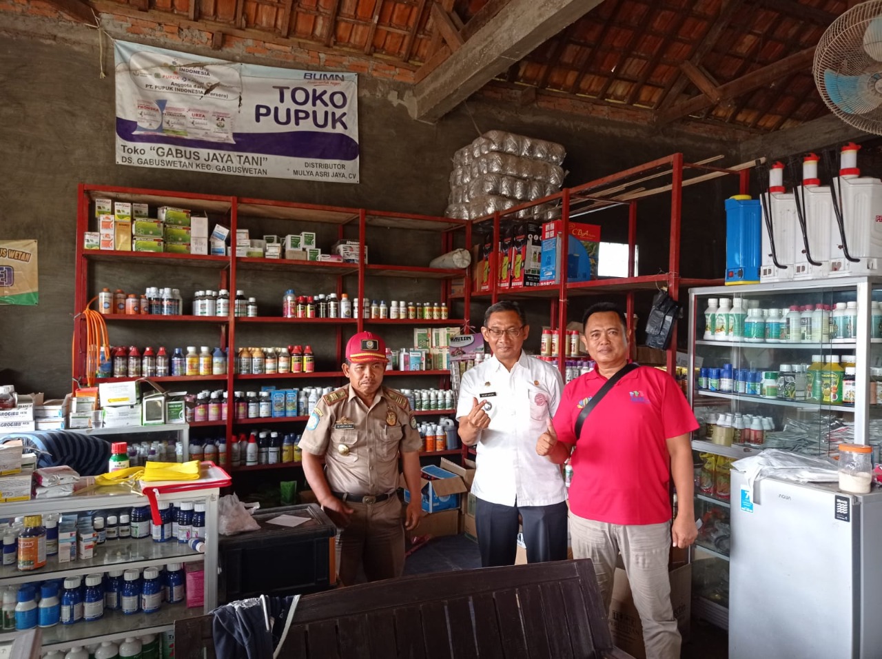 SORANA.CO.ID-INDRAMAYU JAWA BARAT:Camat Gabuswetan Muhtarom bersama dengan Kasi Trantib dan jajaran staf Kecamatan Gabuswetan melaksanakan kegiatan monitoring ke Kios Gabus Jaya Tani Desa Gabuskulon Kecamatan Gabuswetan Kabupaten Indramayu, Rabu (12/1/2022).Camat Gabuswetan Muhtarom mengatakan, monitoring tersebut dilaksanakan dalam rangka melakukan pengecekan serta memastikan ketersediaan pupuk terutama pupuk bersubsidi sesuai dengan alokasi Rencana Definitif Kebutuhan Kelompok (RDKK) yang sudah ditetapkan dan digunakan petani pada masa tanam 2023 yang mana untuk Kecamatan Gabuswetan sudah dimulai sejak Desember 2022.