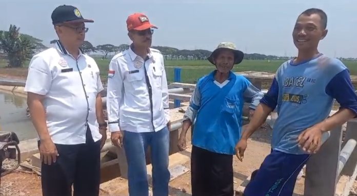 SORANA.CO.ID – INDRAMAYU JAWA BARAT:Camat Lelea Achmad Fauzie Romdhon, S.Sos.,M.Si bersama jajarannya ngantor di pintu air Desa Telagasari untuk memastikan debit air mengalir ke pesawahan di wilayah Kecamatan Lelea Kabupaten Indramayu Rabu (30/8/2023).