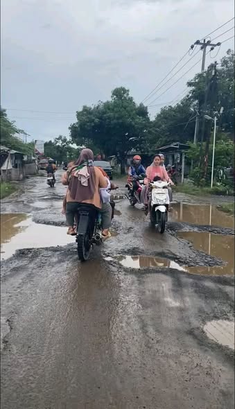 SORANA.CO.ID-INDRAMAYU JAWA BARAT:Tampak dalam gambar jalan rusak berat di Gabus Wetan Dan Gabus Kulon Kecamatan Gabus Wetan Kabupaten Indramayu Jawa Barat.Minggu (1/1/2026) Foto:Sedulur Indramayu Info.(www.sorana.co.id//ras/yd)