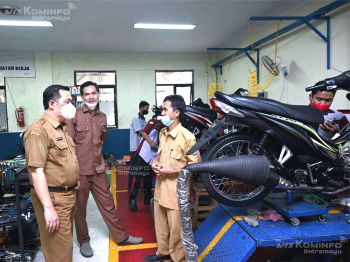 Staf Bupati Bidang Usaha Mikro, Kecil dan Menengah (UMKM) Ato Susanto berkesempatan melakukan monitoring pelaksanaan kegiatan pelatihan Berbasis Kompetensi Tahun 2022 yang dilaksanakan BLK Indramayu di bagian Servis Sepeda Motor Injeksi pada Selasa, 22/3/2022.(ras//sorana.co.id)