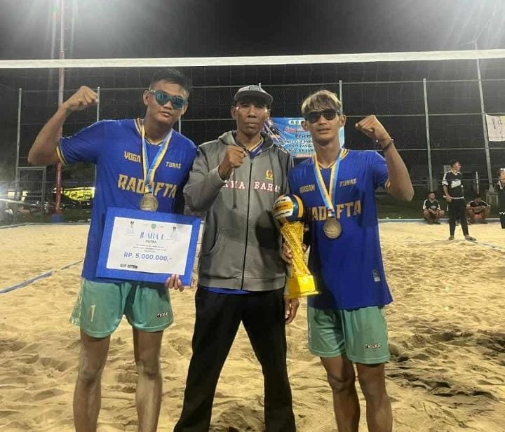 SORANA.CO.ID- INDRAMAYU JAWABARAT; Kabupaten Indramayu, Jawa Barat – Dalam ajang olahraga bergengsi Bupati Cup BK PORPROV XV Jawa Barat, pasangan atlet bola voli pasir putra, Fadhil dan Yoga, berhasil merebut juara pertama. Prestasi ini menjadi bukti kemampuan dan dedikasi mereka dalam olahraga voli pasir.