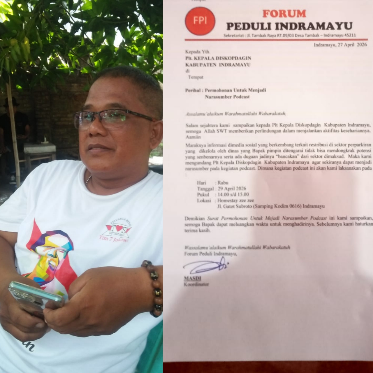 SORANA.CO.ID- INDRAMAYU JAWA BARAT: Forum Peduli Indramayu (FPI) resmi melayangkan surat undangan podcast kepada Pelaksana Tugas (PLT) Kepala Dinas Koperasi, UKM, Perdagangan dan Perindustrian (Diskopdagin) Kabupaten Indramayu.