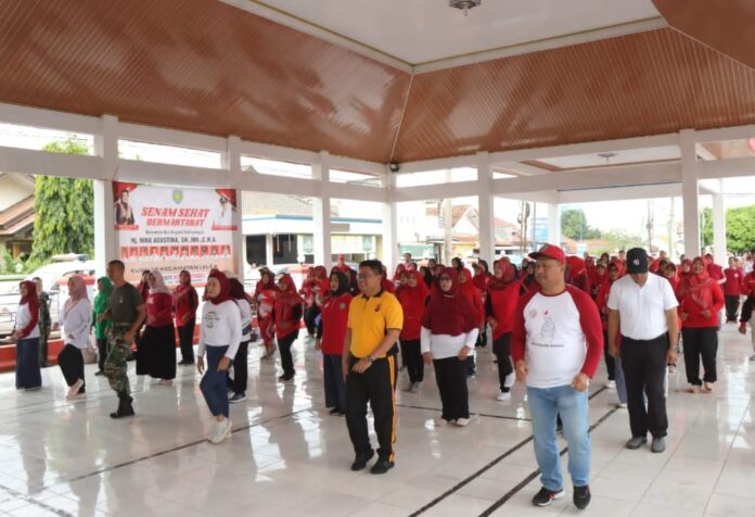 “Kegiatan tersebut dalam rangka kepedulian Pemerintah Kabupaten Indramayu sebagai upaya untuk meningkatkan kesehatan Masyarakat di Kabupaten Indramayu,” ucap IpdaTasim.Disampaikannya, Senam Sehat ini diikuti puluhan peserta yang berasal dari organisasi Perangkat Daerah, unsur Tentara Nasional Indonesia, Kepolisian Resor Indramayu dan masyarakat umum.