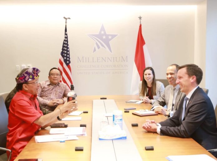 Vice President of Compact Operations at the U.S. MCC, Cameron Alford, Deputy Vice President of Europe, Asia, Pacific, and Latin America, Jonathan Brooks, Officer for Indonesia, Martha Bowen, dan Managing Director of Portfolio Administration in the MCC, Amanda Jennings dihadapan Gubernur Bali, Wayan Koster menyatakan bahwa Millennium Challenge Corporation sangat mendukung adanya minuman Arak Bali.
