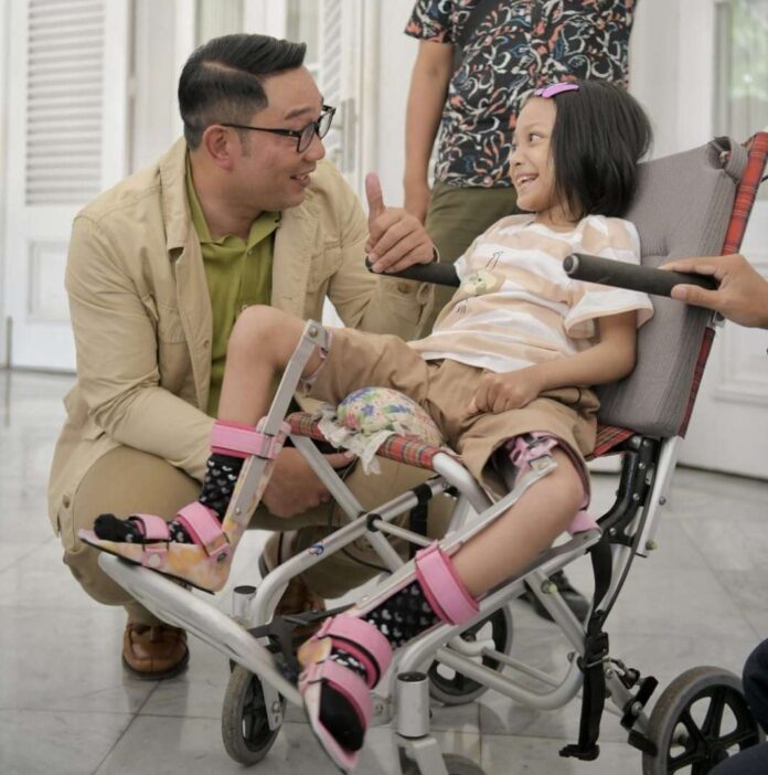 SORANA.CO.ID-BANDUNG JAWA BARAT:Gubernur Jawa Barat Ridwan Kamil memberikan bantuan untuk biaya pengobatan Revalatisha Amalia (10) yang menderita kelumpuhan.Bantuan diserahkan kepada pihak keluarga yang datang ke Gedung Pakuan didampingi perwakilan dari Jabar Quick Response, Jumat (6/1/2023).