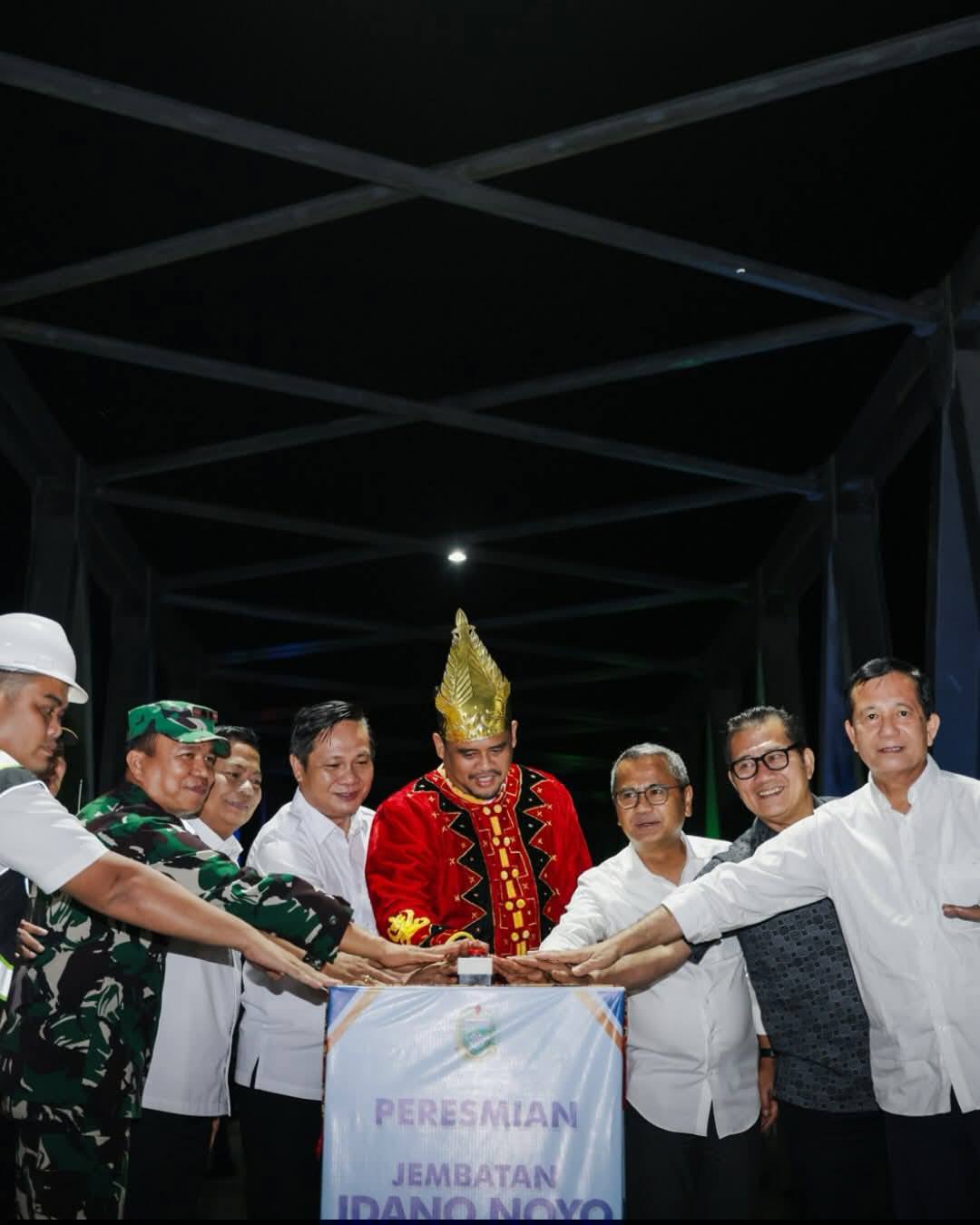 SORANA.CO.ID-NIAS-MEDAN SUMUT:Tampak dalam gambar Gubernur Sumut Bobby Nasution resmikan jembatan roboh dibantai banjir selesai di bangun untuk kelancaran transportasi ekonomi masyarakat Kepulauan Nias dan Nioas Barat Medan Sumut.