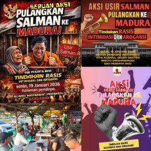 SORANA.CO.ID-INDRAMAYU JAWA BARAT: Pastikan hari ini turun ke jalan massa Aliansi Wong Dermayu Bersatu (AWDB) yang terdiri dari berbagai unsur masyarakat Indramayu siap turun ke jalan melawan pernyataan rasisme Salman.Aksi demo gabungan yang terdiri dari LSM, Ormas, aktivis dan masyarakat Indramayu dijadwalkan berlangsung terpusat kumpul di area sport centre Kota Indramayu Jawa Barat .Senin (19/1/2026).