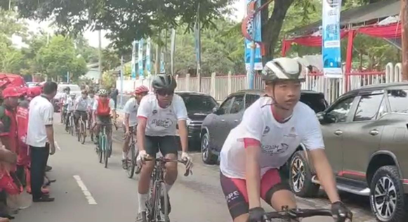 SORANA.CO.ID-INDRAMAYU JAWA BARAT:Bupati Indramayu Nina Agustina SH MH CRA didampingi Dirjen Pengelolaan Sampah, Limbah, dan B3 Kementerian Lingkungan Hidup dan Kehutanan Rossa Vivien Ratnawati, menerima tim pesepeda jelajah negeri di taman ecovarian Taman Cimanuk Kota Indramayu, Selasa (14/2).Indramayu menjadi salah satu tempat singgah tim sepeda jelajah negeri menyambut Hari Peduli Sampah Nasional (HPSN) yang dimulai dari Denpasar dan finish di Manggala Wana Bhakti Jakarta sepanjang 1200 kilometer.