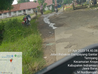 SORANA.CO.ID-INDRAMAYU JAWA BARAT:Tampak dalam gambar terjadi kerusakan jalan di Babakan Dampayang Gantar Temiyangsari Kecamatan Kroya Kabupaten Indramayu Jawa Barat-Sabtu (22/4/2023).Terjadinya kerusakan jalan dampak anggaran