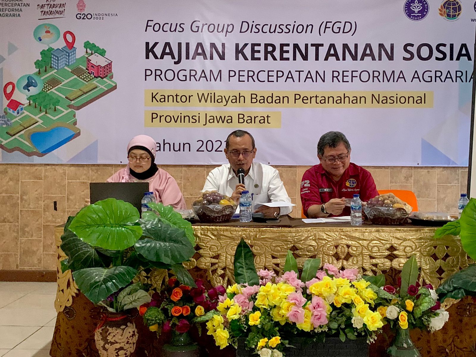 SORANA.CO.ID-INDRAMAYU JAWA BARAT:Kantor Wilayah Badan Pertanahan Nasional (BPN) Provinsi Jawa Barat mengadakan Forum Group Discussion (FGD) Kajian Kerentanan Sosial Pendaftaran Tanah Sistematis Lengkap Partisipasi Masyarakat (PTSL PM) dalam program percepatan Reforma Agraria Provinsi Jawa Barat, di Hotel Wiwi Perkasa II Indramayu, Rabu (7/12/2022).