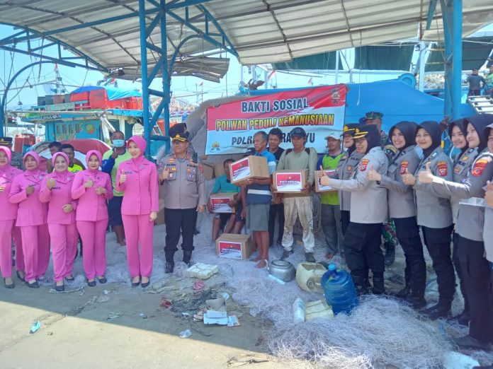 SORANA.CO.ID-INDRAMAYU JAWA BARAT:Kapolres Indramayu AKBP Dr M Fahri Siregar SH S.I.K MH melaksanakan kegiatan dengan memberikan bantuan Sosial berupa paket sembako sebanyak 100 bansos kepada nelayan dan juga masyarakat pesisir yang ada di Desa Karangsong, Kabupaten Indramayu. Kamis (31/08/2023).