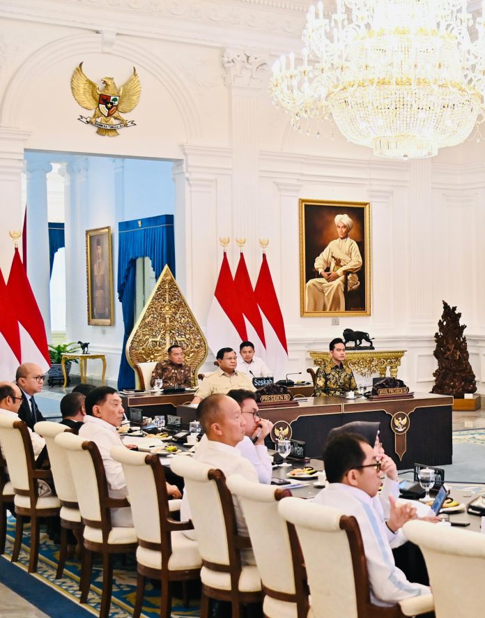 SORANA.CO.ID-JAKARTA:Presiden Prabowo Subianto memimpin rapat terbatas yang membahas perkembangan Kawasan Ekonomi Khusus (KEK) bersama sejumlah Menteri Kabinet Merah Putih di Istana Merdeka, Jakarta, pada Selasa (22/07/2025). Rapat tersebut digelar secara hybrid, di mana Presiden Prabowo, Wakil Presiden Gibran Rakabuming, sejumlah menteri, dan perwakilan KEK yang hadir secara langsung di Istana Merdeka terhubung dengan sejumlah perwakilan KEK lainnya dari berbagai wilayah di tanah air melalui video konferensi.
