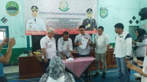 SORANA.CO.ID-INDRAMAYU JAWA BARAT: Pemerintah Kecamatan Kertasemaya dan Sukagumiwang secara bersamaan menandatangani Memorandum of Understanding (MoU) dengan Kejaksaan Negeri (Kejari) Indramayu, di Gedung Pelangi PGRI Kertasemaya Kabupaten Indramayu, Rabu (11/1/2023).Dalam penandatanganan MoU bersama Kejari Indramayu itu juga diikuti sejumlah kepala desa baik di lingkup Kecamatan Kertasemaya maupun Sukagumiwang. MoU ini terkait Penanganan Masalah Hukum Di Bidang Perdata dan Tata Usaha Negara.