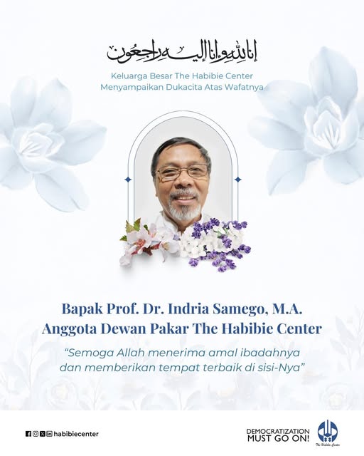SORANA.CO.ID-JAKARTA:Keluarga besar The Habibie Center menyampaikan dukacita yang mendalam atas wafatnya Bapak Prof. Dr. Indria Samego, M.A., Anggota Dewan Pakar The Habibie Center.Almarhum merupakan seorang intelektual, peneliti senior, dan pengamat politik yang memiliki dedikasi tinggi terhadap penguatan demokrasi dan tata kelola pemerintahan.