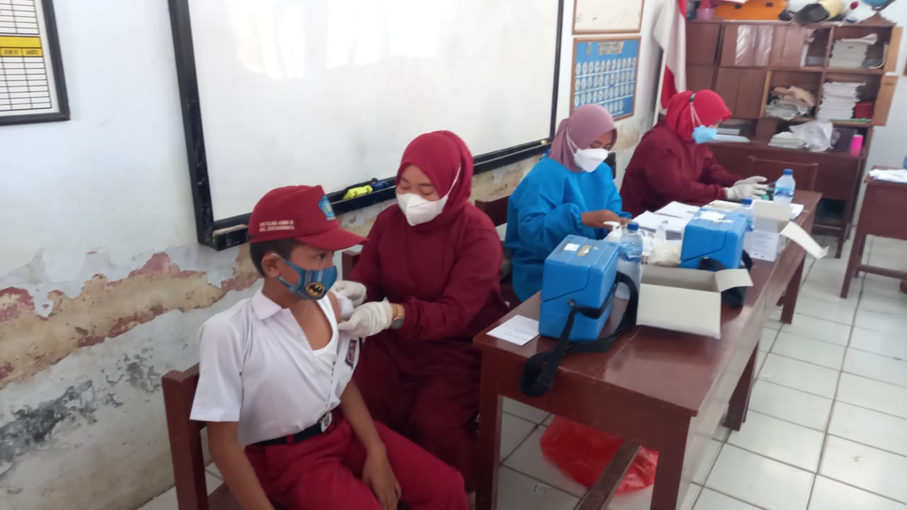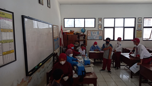 Setelah menyelesaikan tahap registrasi para siswa menunggu di ruang tunggu didampingi oleh orang tua masing-masing. Menanti panggilan petugas Scraning sesuai urutan nomor. Setelah dinyatakan sehat oleh petugas scraning maka siswa tersebut di suntik vaksin Dosis 2. Usai suntik kemudian pengisian data siswa yang telah vaksin oleh para petugas dari sekolah dengan dibantu petugas puskesmas.