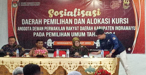 Hadir dalam Sosialisasi Daerah Pemilihan dan Alokasi Kursi Anggota Dewan Perwakilan Rakya Daerah dalam Pemilu 2024 tiga komisioner KPU kabupaten Indramayu,Diantaranya Pitra Hari ,Dewi Nurmala Sari dan H Fahmi Labib sebagai pembicara dalam kegiatan tersebut.Dalam pemaparan ketiga pembicara,lebih terfokus kepada kesiapan wakil rakyat untuk mencalonkan diri menjadi wakil rakyat pada setiap daerah pemilihan dengan melengkapi semua persyaratan yang wajib dilakukan dan keterlibatan calon perempuan di setiap dapilnya.