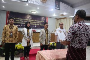 SORANA.CO.ID-INDRAMAYU JAWA BARAT: Komisi Pemilihan Umum (KPU) Kabupaten Indramayu menggelar Penetapan dan Penandatanganan Pakta Integritas Sekretariat Panitia Pemilihan Kecamatan se-Kabupaten Indramayu pada Pemilihan Umum Tahun 2024.Kegiatan yang dilaksanakan di Aula Hotel Wiwi Perkasa 2, pada Kamis (12/1/2023), dihadiri oleh Bupati Indramayu Nina Agustina yang diwakili Asisten Daerah Pemerintahan dan Kesejahteraan Rakyat Setda Indramayu Jajang Sudrajat, Ketua KPU Kabupaten Indramayu Ahmad Toni Fatoni, Plt Kepala Bakesbangpol Kabupaten Indramayu Dadang Oce Iskandar, perwakilan Polres Kabupaten Indramayu, segenap jajaran Organisasi Perangkat Daerah (OPD) Kabupaten Indramayu, dan sekretariat panitia pemilihan kecamatan, dan undangan lainnya.