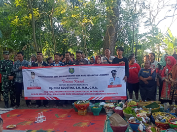 SORANA.CO.ID-INDRAMAYU JAWA BARAT: Kuwu Kardam beserta Masyarakat Desa Waru Kecamatan Lohbener mengucapkan terimakasih kepada ibu Bupati Indramayu Nina Agustina atas terlaksananya kegiatan Cor beton jalan gang desa dan pemasangan Penerangan Jalan Umum (PJU) yang terletak di blok Kedung RT 001 RW 001. Pada kegiatan acara syukuran ini dihadiri oleh Sekmat Lohbener, Babinsa dan Babinkamtibmas beserta para Pamong Desa waru, Kamis (25/05/2023).