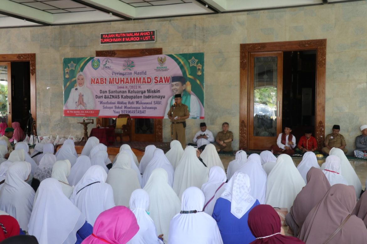Peringatan maulid Nabi Muhammad Shalallahu ‘alaihi wa sallam yang diawali dengan pemberian santunan berupa sembako kepada keluarga yang tidak mampu sejumlah 100 paket, kemudian dilanjutkan dengan tabligh akbar oleh K.H Muhammad Carsita yang diikuti para jemaah majelis ta’lim se-Kabupaten Indramayu serta perwakilan perangkat daerah Indramayu.Sambutan Bupati Indramayu Nina Agustina Da’i Bachtiar yang disampaikan Asisten Sekretaris Daerah Bidang Pemerintahan dan Kesejahteraan Rakyat Jajang Sudrajat mengatakan, peringatan maulid nabi selain memperingati kelahiran Nabi Muhammad Shalallahu ‘alaihi wa sallam juga menjadi momen strategis untuk senantiasa menjadikan Nabi Muhammad Shalallahu ‘alaihi wa sallam sebagai suri tauladan.