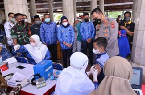 Pemerintah Kabupaten Indramayu terus melakukan percepatan vaksinasi di segala lini. Hal ini untuk memastikan terciptanya kekebalan komunal terhadap masyarakat maupun anak-anak agar bisa terhindar dari paparan Covid-19 yang saat ini kasus terkonfirmasi tengah naik di Kabupaten Indramayu.