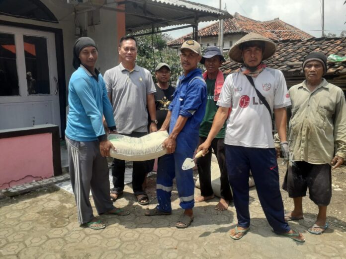 SORANA.CO.ID-INDRAMAYU JABAR: Sebanyak 10 sak semen dari Bupati Indramayu Nina Agustina Da’i Bachtiar disalurkan melalui Camat Balongan Opik Hidayat kepada panitia pembangunan Musholla Nurul Mu’min yang berlokasi di Desa Sudimampir, Kecamatan Balongan, Kabupaten Indramayu, Sabtu (5/11/2022).