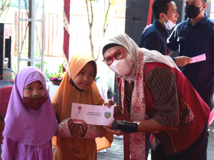 Dalam kegiatan ini Bupati Indramayu Nina Agustina didampingi Asisten Pemerintahan dan Kesejahteraan Rakyat Jajang Sudrajat bersama Camat Bongas Rohaedi secara simbolis memberikan santunan kepada anak yatim dan piatu.