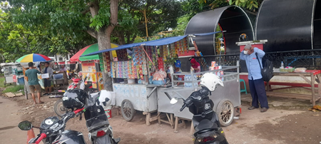 SORANA.CO.ID-INDRAMAYU JAWA BARAT:Berbagai macam cara yang dilakukan pedagang bagaimana menarik pembeli agar dagangan yang di jajakan laris manis, Baik dari tempat, rasa, cara penyajian, dan mempromosikannya.Hal ini dilakukan pedagang siomay sebut saja Abdurahman Effendi akrab di sapa Adung selalu berpakaian rapih berdasi bak pekerja kantoran, biasa berjualan di tugu perjuangan simpang 5 Indramayu tepatnya di depan kantor LTSA Disnaker.