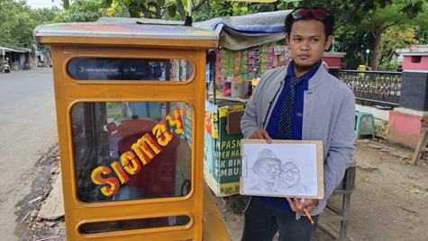 “Awalnya saya tidak tau kalau orang ini pedagang siomay berpakaian rapih berdasi seperti pegawai kantoran, akhirnya saya mencoba membelinya dan bertanya-tanya ke mas adung. Yang tadinya sekedar membeli siomay hanya ingin memenuhi rasa penasaran saya, akhirnya saya mau di lukiskan foto keluarga saya kepada mas adung, karena saya tertarik melihat hasil karya lukisannya.” tutupnya.(soarana.co.id//ras/ind/rz)