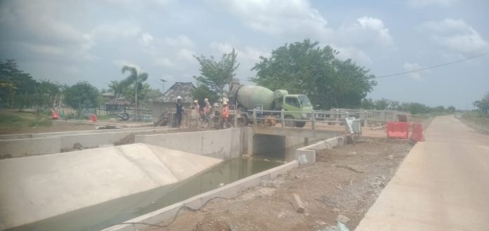 SORANA.CO.ID-INDRAMAYU JAWA BARAT:Terlihat dalam gambar Pekerjaan BBWSC Cisanggarung Pembuatan Pintu Air masih dikerjakan Di Blok Embung Jangkar Desa Sindang Kecamatan Sindang Kabupaten Indramayu Jawa Barat Selasa (30/9/2-25).