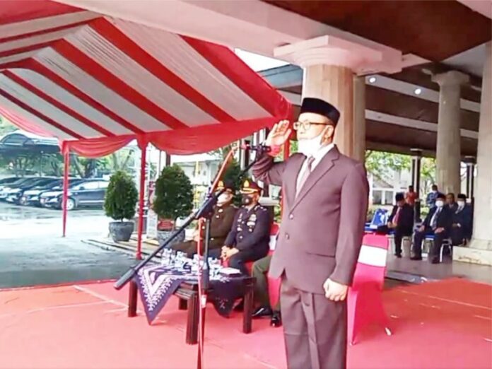 Sekretaris Daerah (Sekda) Kabupaten Indramayu Rinto Waluyo .Sebagai inspektur upacara pada peringatan Hari Kebangkitan Nasional (Harkitnas) ke-114 Tahun 2022 Tingkat Kabupaten Indramayu,Jawa Barat di Halaman Pendopo Indramayu, Jum’at (20/5/2022).