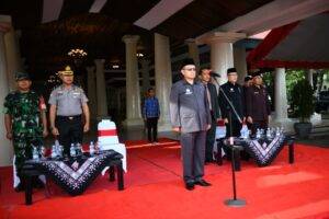 SORANA.CO.ID-INDRAMAYU JAWA BARAT:Pemerintah Kabupaten Indramayu (Pemkab) melaksanakan Upacara Peringatan Otonomi Daerah ke-27 tahun 2023 tingkat Kabupaten Indramayu dengan Tema “Otonomi Daerah Maju, Indonesia Unggul”, di Halaman Pendopo Kabupaten Indramayu, Sabtu. (29/4/2023).