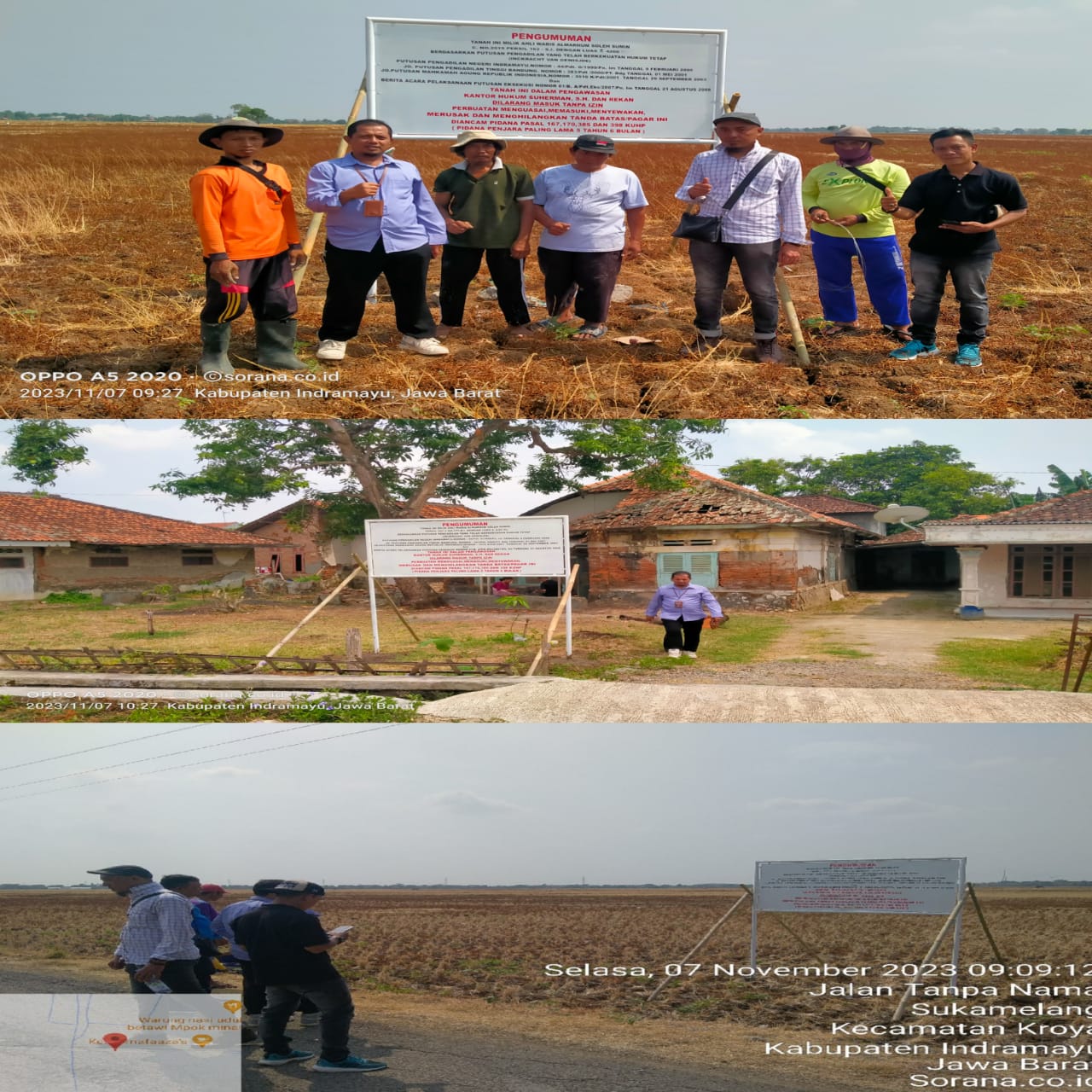 Pemasangan patok pembatas dan plang oleh pengacara Suherman SH ada tiga titik area,tanah sawah seluas lebih kurang 36.740 meter persegi yang berlokasi di desa Sukamelang Kecamatan Kroya Kabupaten Indramayu.