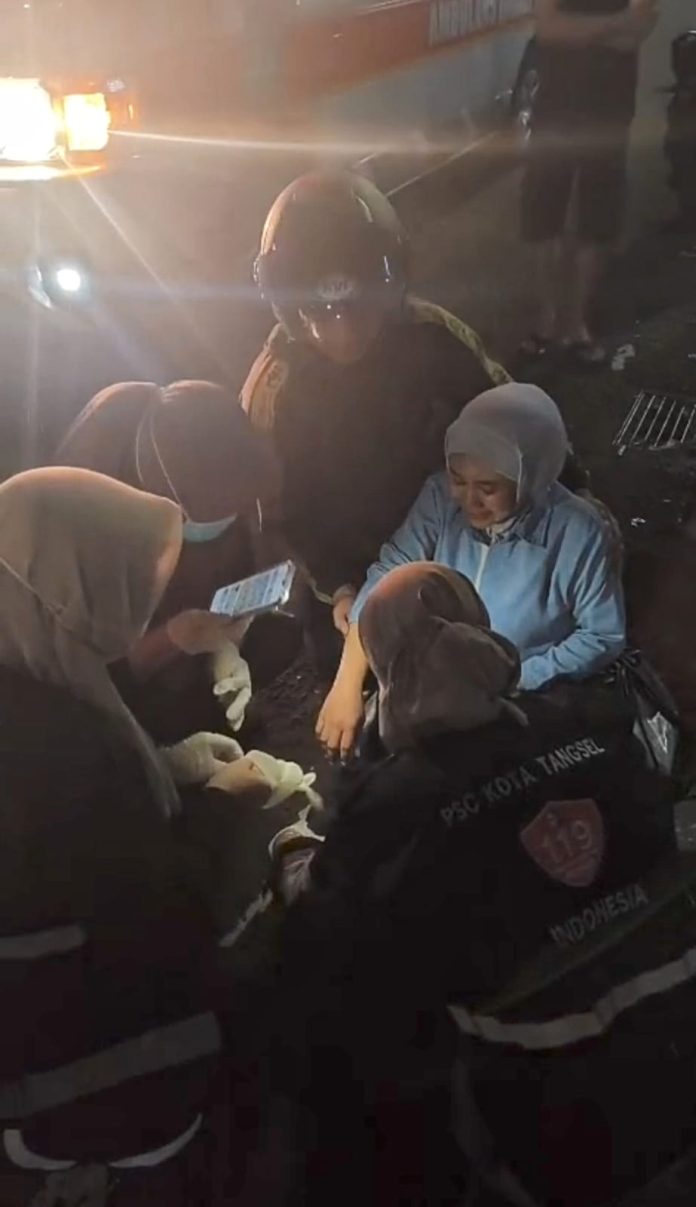 Tim dari Dinas Kesehatan dengan sigap menuju lokasi setelah menerima laporan. Setibanya di tempat kejadian, petugas segera memeriksa kondisi korban dan memberikan penanganan awal. Setelah dilakukan pemeriksaan, korban dibawa ke RS Hermina Serpong guna mendapatkan perawatan lebih lanjut.