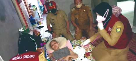 Pemerintah Kecamatan Sindang Kabupaten Indramayu segera melakukan reaksi cepat tanggap terhadap masyarakat yang tengah terbaring sakit terkena kanker payudara di Desa Terusan Blok Babar Layar Kecamatan Sindang Indramayu, Selasa (8/2/2022).Camat Sindang Rusyad Nurdin menjelaskan, bermula dari aduan masyarakat yang melaporkan lewat layanan Indramayu Cepat Tanggap (I-Ceta) maka pihaknya bersama Pusat Kesehatan Masyarakat (Puskemas) Sindang terjun menuju lokasi salah satu warga yang tengah berjuang melawan kanker payudara.