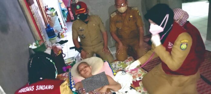 “Kita bersama Puskemas Sindang terjun menuju lokasi Ibu Raniah pengidap kanker payudara. Dari Program Dokter Masuk Rumah (Dok-Maru) warga kami mendapat layanan medis,” katanya.Camat Rusyad menyebutkan, kondisinya Ibu Raniah semakin pilu karena memiliki dua anak dan dirinya seorang janda, sehingga pemerintah kecamatan akan membantu segala layanan termasuk medis untuk kesembuhannya.