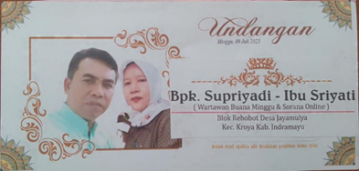 SORANA.CO.ID-INDRAMAYU JAWA BARAT: Atas nama Pemimpin Redaksi /Wartawan dan Karyawan SORANA.CO.ID “Raskahanna S Depari “mengucapkan selamat dalam pernikahan dan semoga kalian menjadi keluarga yang bahagia dan penuh cinta.