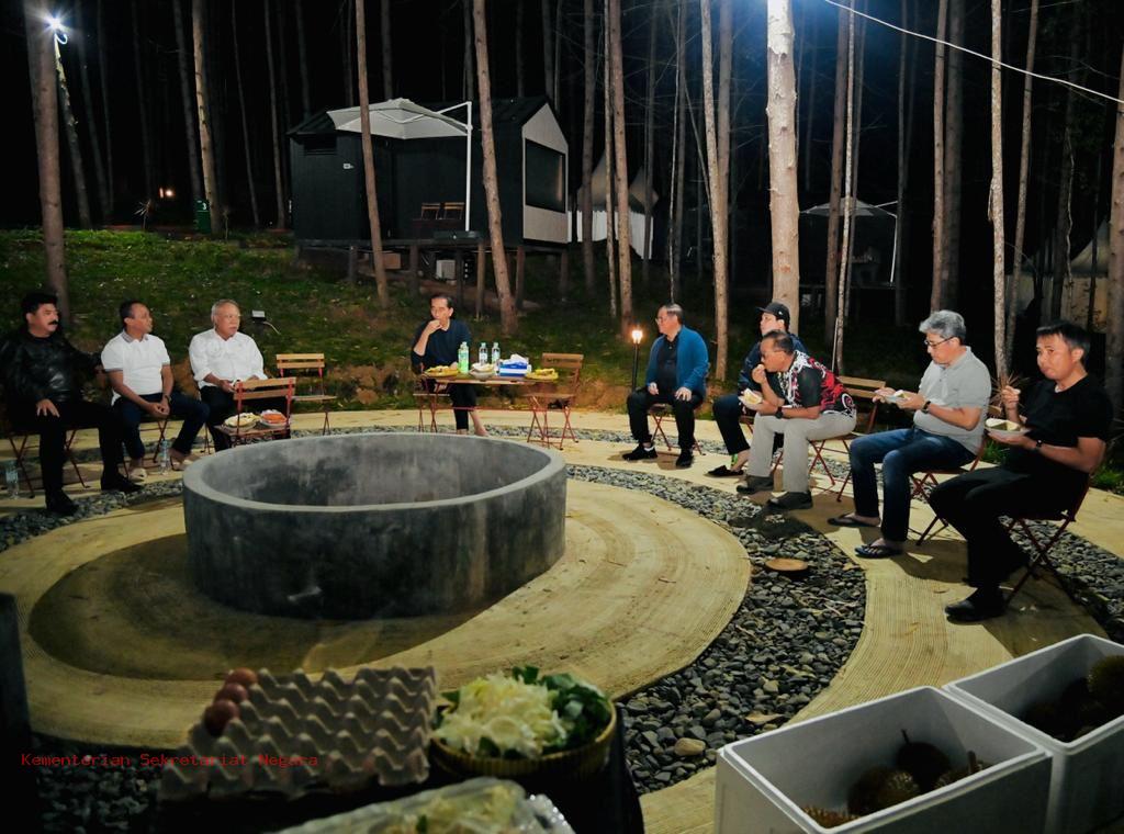 Terlihat dalam momen makan malam tersebut yakni Sekretaris Kabinet Pramono Anung, Menteri PUPR Basuki Hadimuliono, Menteri BUMN Erick Thohir, Menteri Investasi/Kepala BKPM Bahlil Lahadalia, Menteri ATR/Kepala BPN Hadi Tjahjanto, Kepala Otorita IKN Bambang Susantono, dan Wakil Kepala Otorita IKN Dhony Rahajoe.Source Humas Kemensetneg-(sorana.co.id//thio s depari)