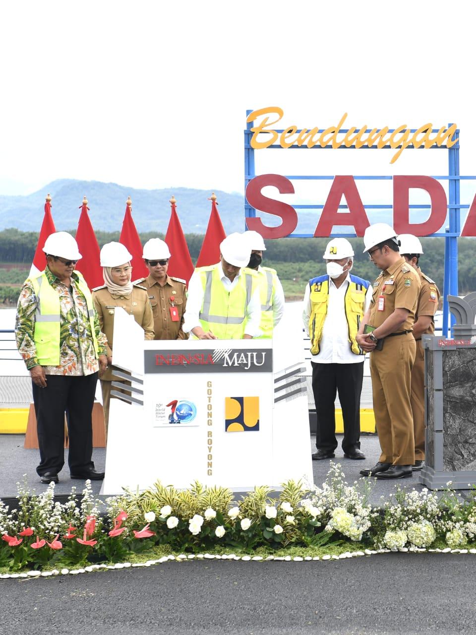 “Dengan mengucap bismillahirahmanirrahim, pagi hari ini saya resmikan Bendungan Sadawarna di Kabupaten Sumedang, Provinsi Jawa Barat,” ucap Presiden Jokowi.