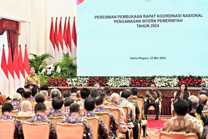 Hal tersebut disampaikan Presiden dalam sambutannya saat meresmikan pembukaan Rapat Koordinasi Nasional (Rakornas) Pengawasan Intern Pemerintah Tahun 2024 di Istana Negara, Jakarta, pada Rabu, 22 Mei 2024.