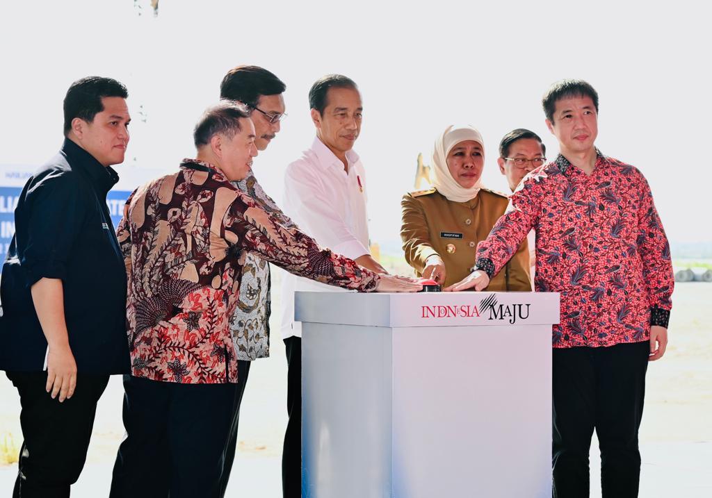 Turut mendampingi Presiden dalam peninjauan ini adalah Menteri Koordinator Bidang Kemaritiman dan Investasi Luhut Binsar Pandjaitan, Menteri Investasi/Kepala BKPM Bahlil Lahadalia, Menteri ESDM Arifin Tasrif, Menteri BUMN Erick Thohir, Sekretaris Kabinet Pramono Anung, Gubernur Jawa Timur Khofifah Indar Parawansa, dan Presiden Direktur PT Freeport Indonesia Tony Wenas.Source Humas Kemensetneg(sorana.co.id//ras)